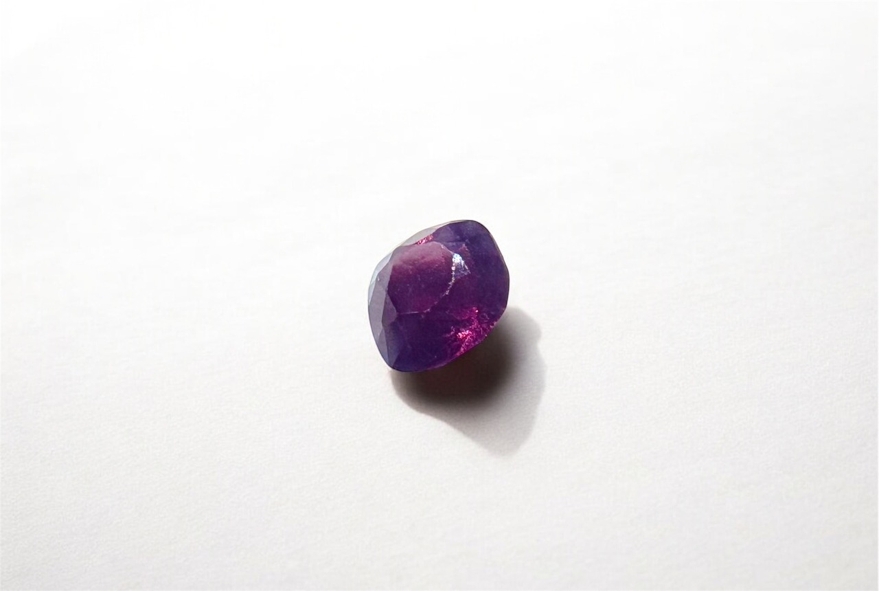 深い紫に、紅を差し込むような輝きを宿したブルーサファイア。