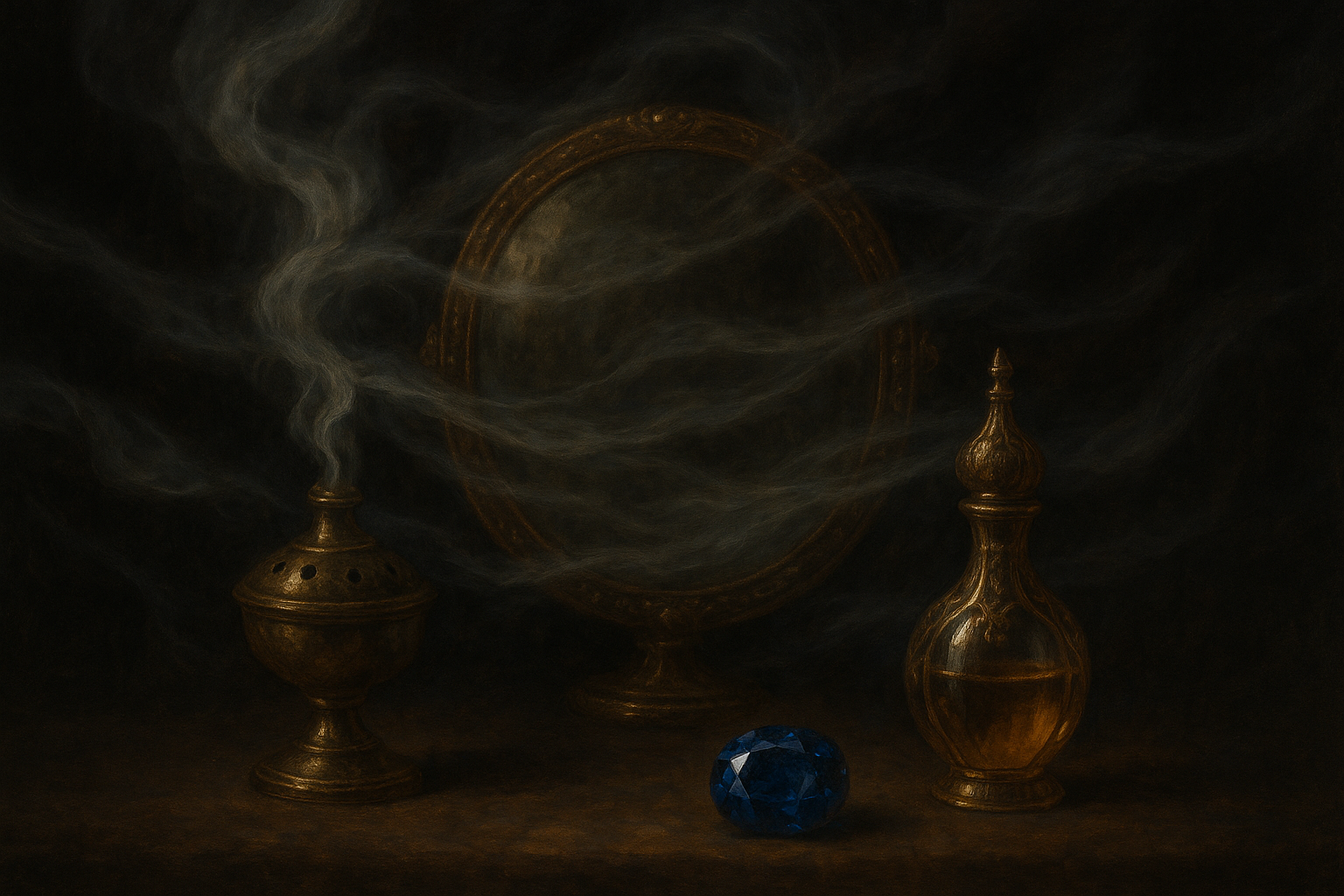 煙とは、形を持たず、けれど確かに存在するもの。目に見えて、すぐに消えて、そして香りを残す。香油やバフールの煙は、私たちの感情や記憶のように、つかの間だけ浮かび上がる真実の影のようなものです。